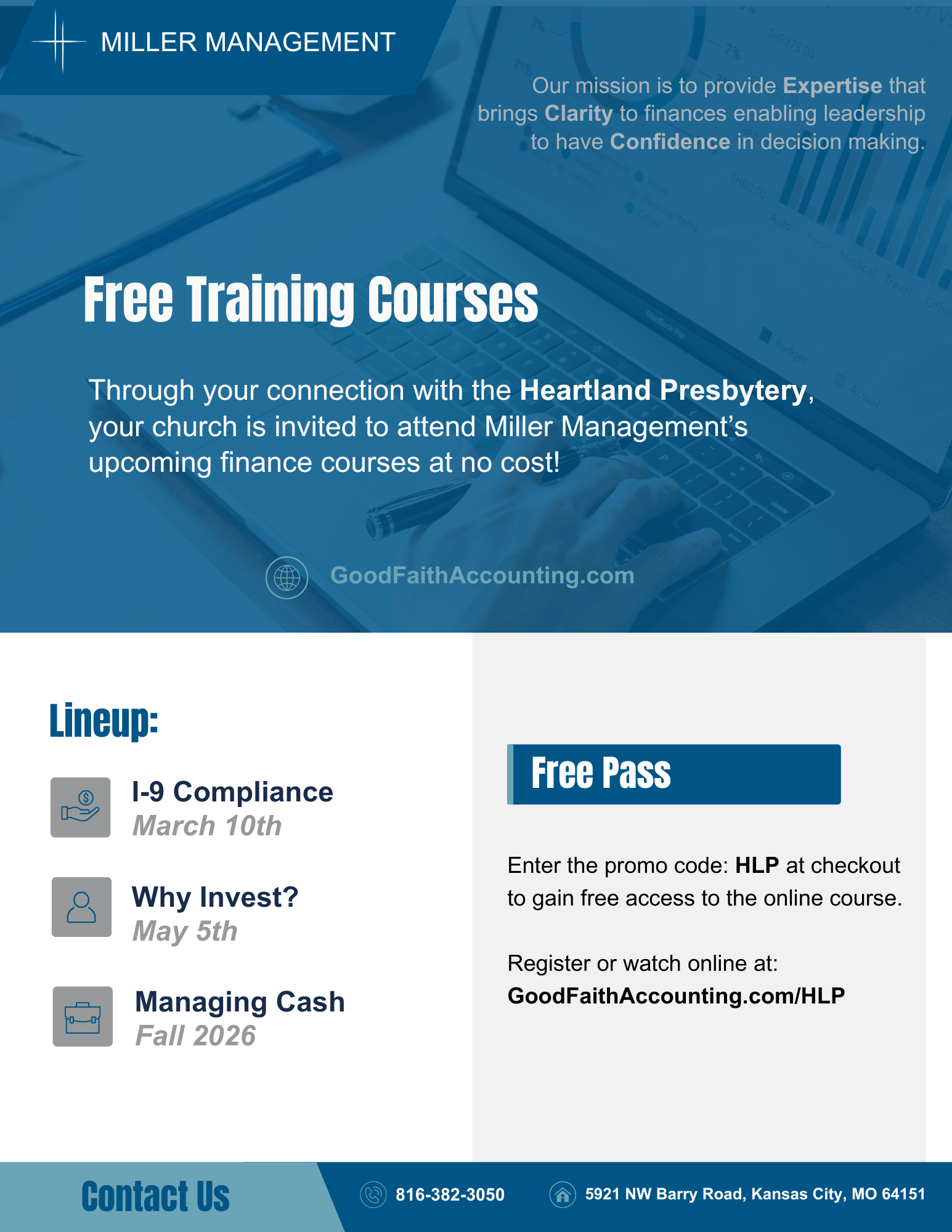 Miller Management offers members of Heartland Presbytery Free Training Courses - follow this link for additional information!